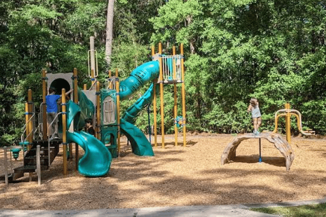 Acacia Park, located in the Village of Alden Bridge, is a great place to enjoy the outdoors. The park has playground equipment for both young and older children, including climbing structures, slides, and swings. Parents can sit on benches nearby or walk around the green space. With lots of shade and open areas, it's a popular spot for relaxing outside. The park covers 0.98 acres and offers amenities like belt swings, bucket swings, drinking fountains, picnic tables, and play equipment for all ages. Come visit and have a great time!